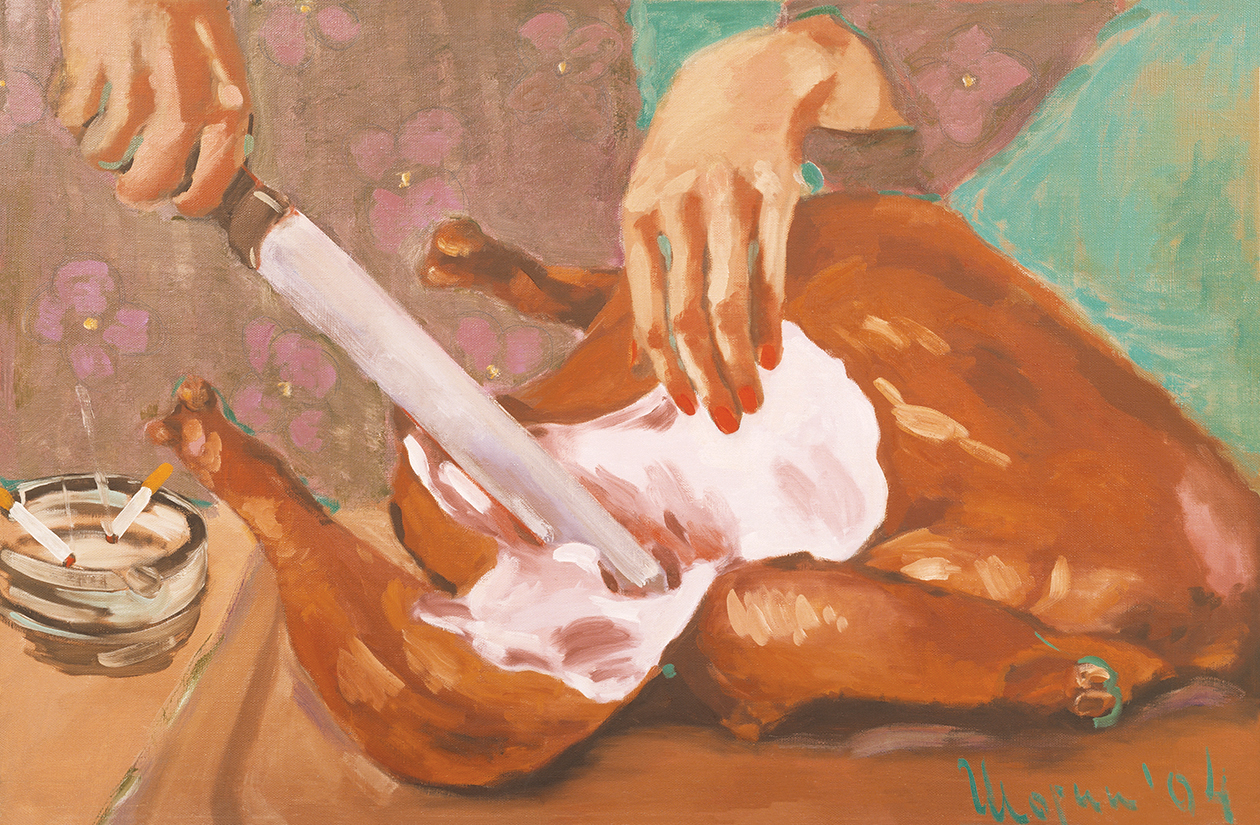 Художник по собственной технологии дорабатывает холст вручную с помощью красок и других материалов. Такой подход позволяет создать объемную поверхность, наложить «живые» мазки, проявить фактуру холста, имитировать старение картины или достичь иных спецэффектов.